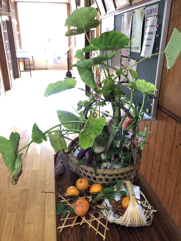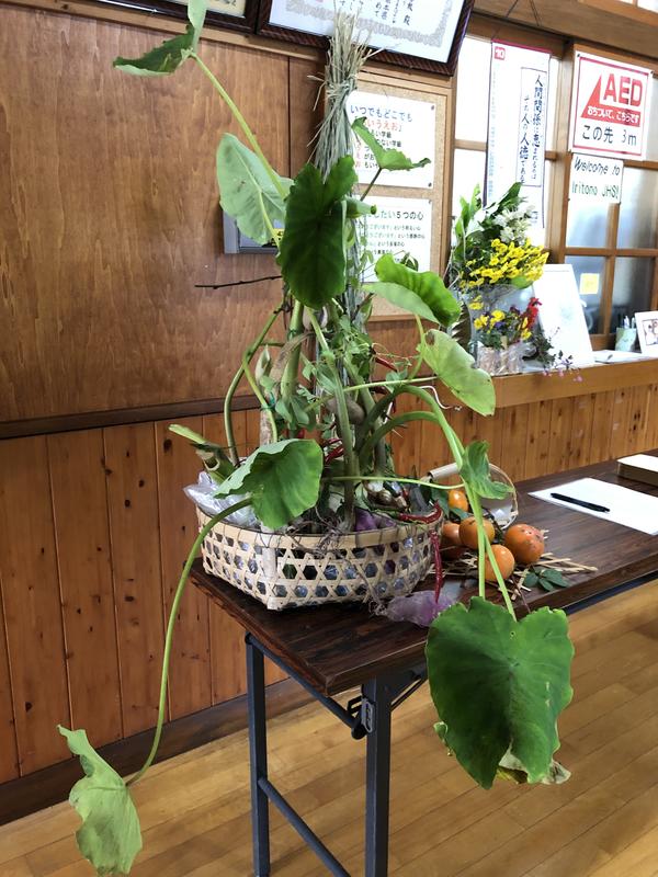 「農を生ける」 地元の素材をあつらえた見事なオブジェです(用務員さんより)