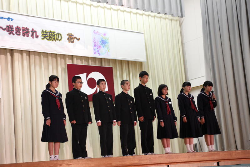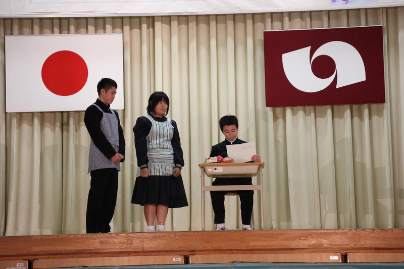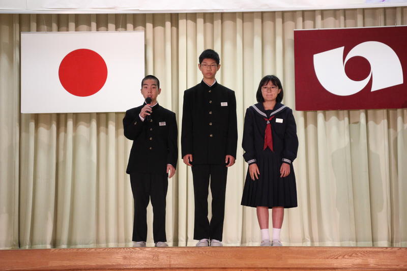 3学年は、職場体験で行った仕事の内容を短くまとめ、発表しました。自衛隊での体験活動も上手に表現していました。