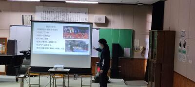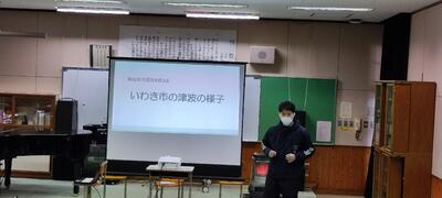 学生時代に被災した体験を大平先生が資料を交えて伝えました。