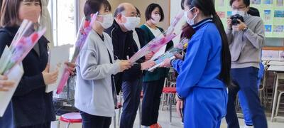 昼には謝恩式として3年生から言葉と歌のプレゼント等がありました。