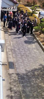 全9名の卒業生がしっかりと自分の足で踏みしめながらの入退場。