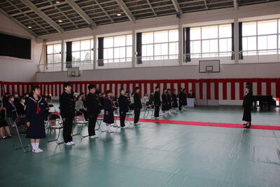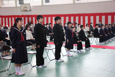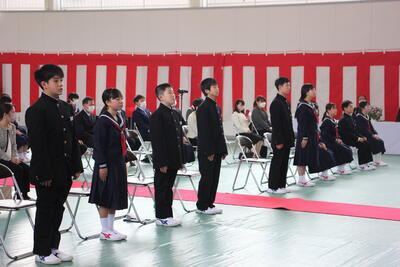 担任が一人一人呼名した際の返事も大変立派で、今後の中学校での活躍が楽しみです。一日も早く入遠野中学校の生活に慣れ、先輩とともに、新たな伝統を創っていってほしいと思います。