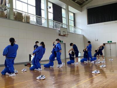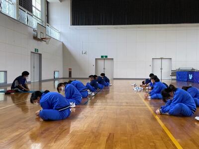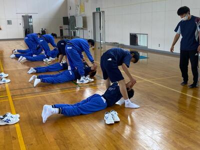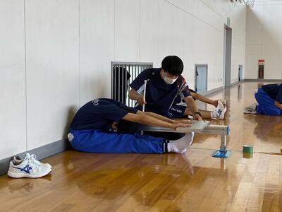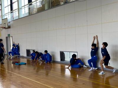 1年生の保体では、新体力テストの種目の1つで、柔軟性を測定する「長座体前屈」に挑戦していました。色々なストレッチを行って、筋肉や関節を柔らかくしてから、いざ本番!大記録は出たでしょうか?