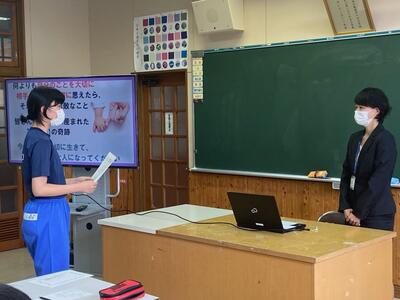 2022年6月16日 16時19分本日5校時は、いわき医療センター看護部の助産師である山形ことみ先生をお招きして、思春期講座を行いました。