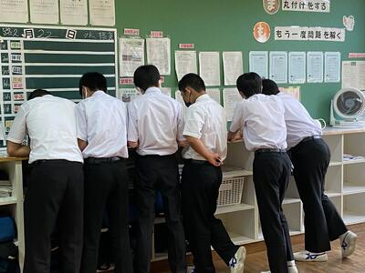 写真は、休み時間や開始直前の様子です。終わってホッとしたのも束の間、次の教科の最終確認に余念がありません。明日は残り4教科のテストを実施します。これまでの学習の成果を十分出し切れますように…。