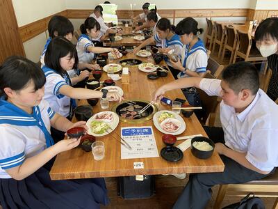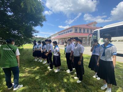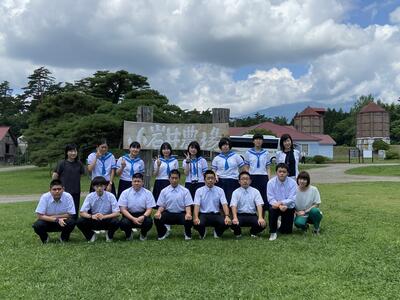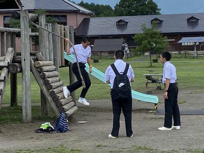 2022年7月6日 13時03分小岩井農場では、ガイドさんに園内の牛舎やサイロを案内していただいた後、BBQランチをいただきました。食後は、園内を散策したり、アーチェリーやアスレチックを楽しんだりと、思い思いに過ごしています。