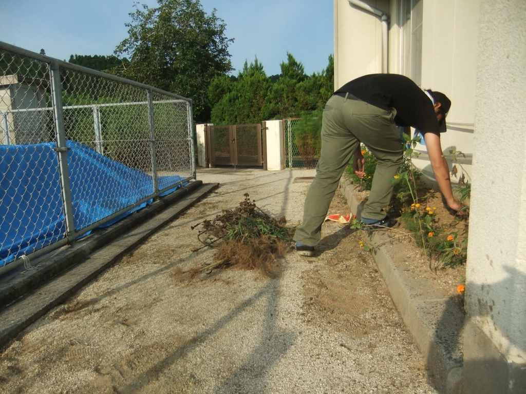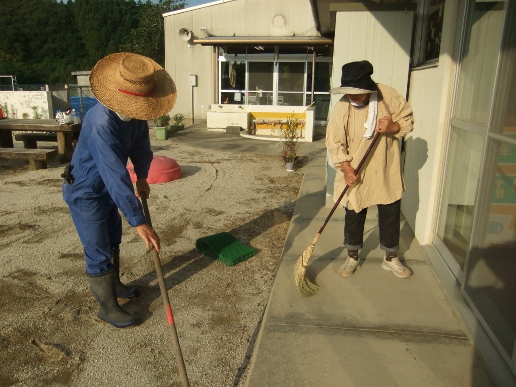 2014年8月25日 10時41分 二学期の始まりを前に、保護者の皆様が、6時30分から7時30分まで 園庭の草刈や園舎内のお掃除をしてくださいました。