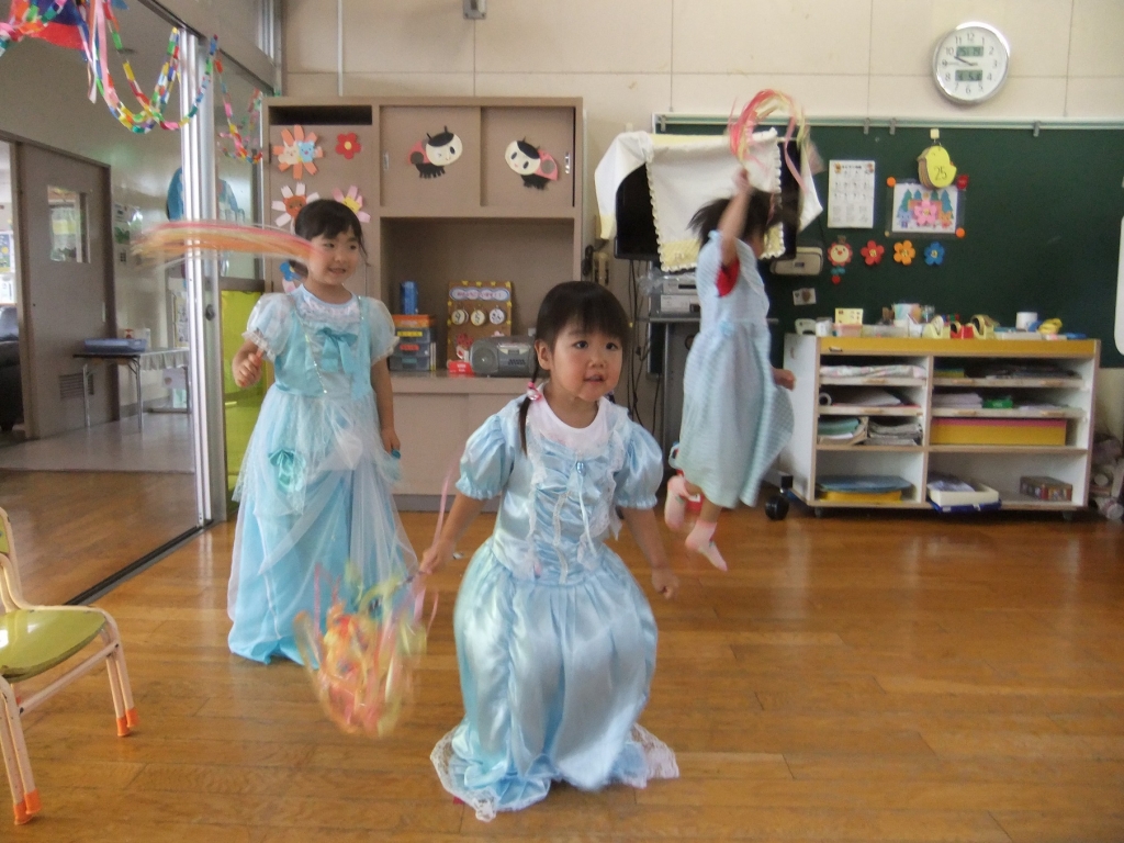 ママ達は楽しくお話会。子どもはお医者さんごっこ アナゆきになりっきって踊ります