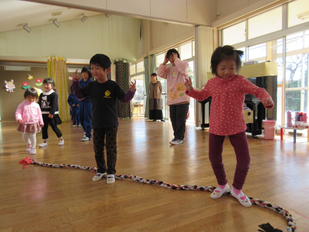 いやジャンプ、バランスなど普段とは違った動きでしたが、たくさん体を動かして楽しん