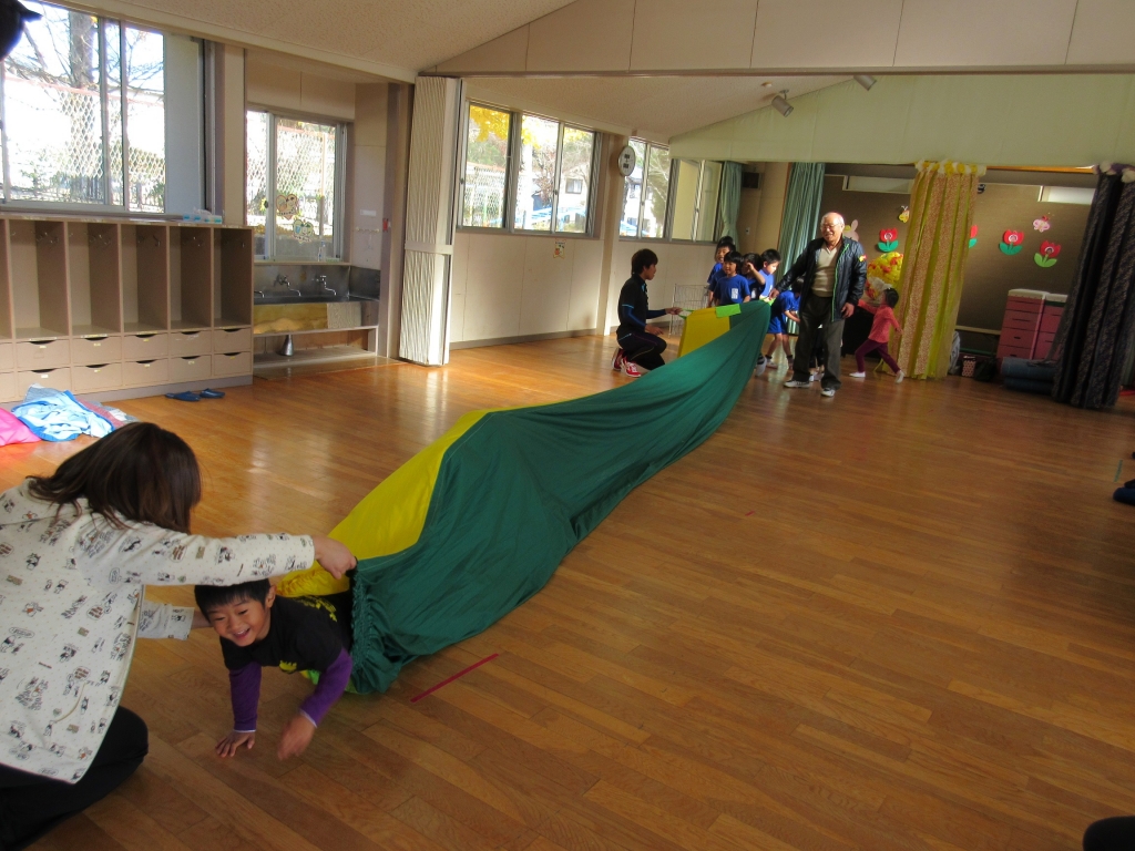 の方が来園し、様々な動きを取り入れた運動遊びを教えていただきました。四つん這