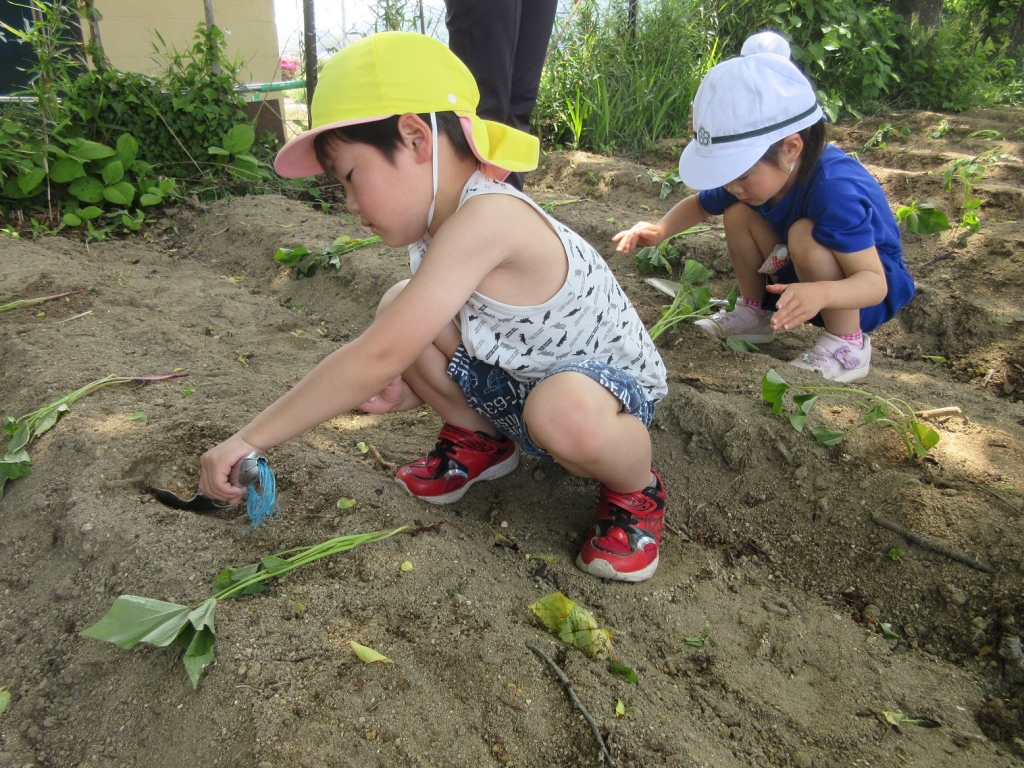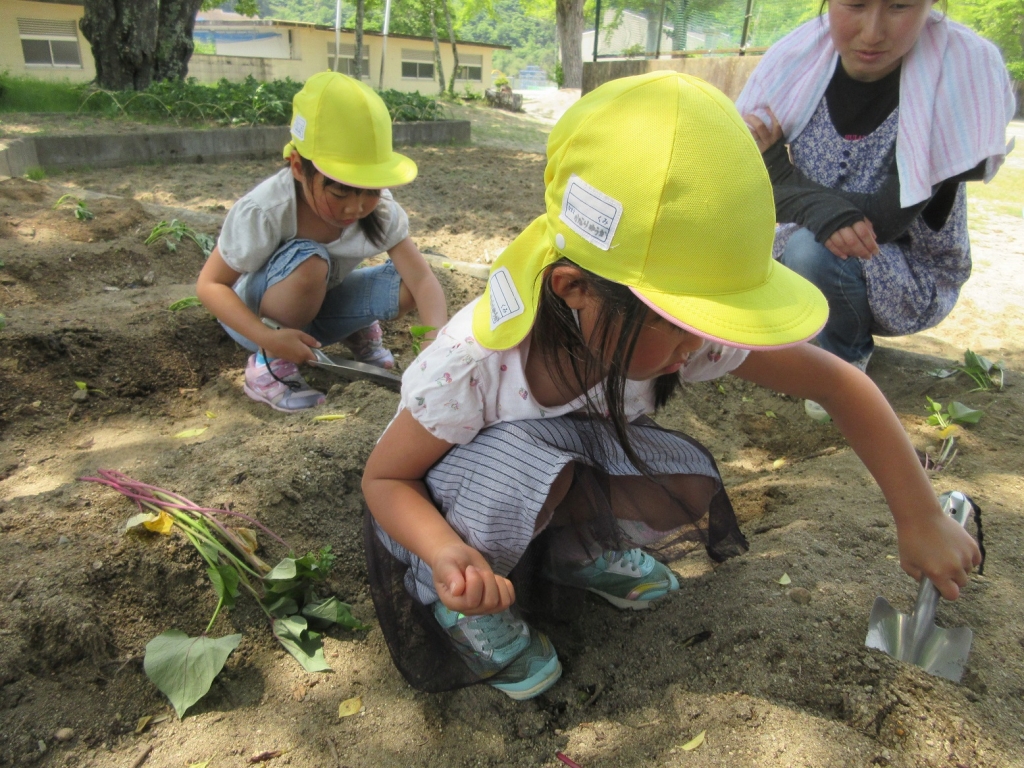 毎年恒例のさつまいもの苗植え❤年長児:きく組は慣れた手つきで苗を植えていました(^^♪
