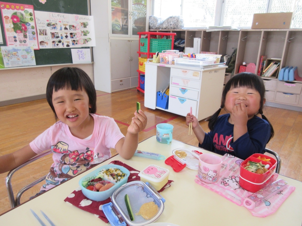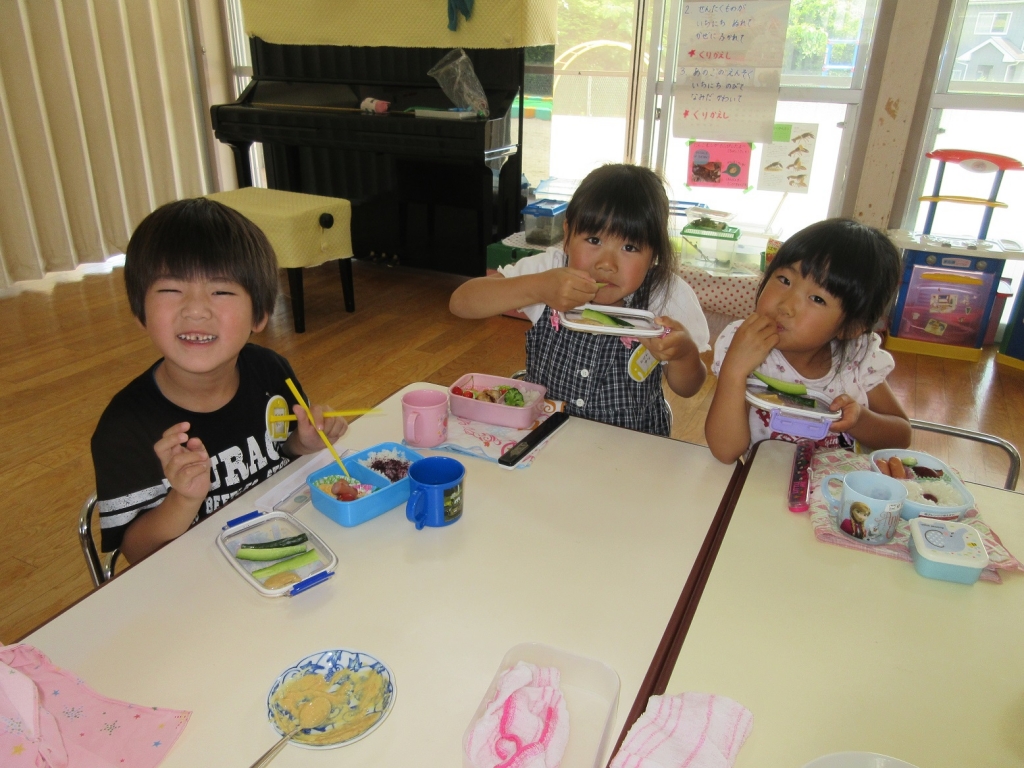 はつか大根を収穫して食べた経験から、「またお味噌とマヨネーズで食べたい‼」という年長児のリクエストにより、お味噌&マヨネーズでキュウリの試食♥