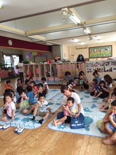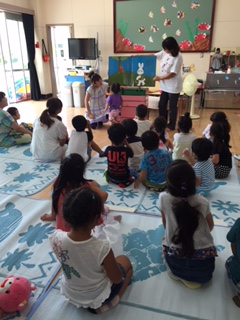 水遊びの後は、アイスを食べ、しっとりと、大型絵本「おいものてんぷら」をみて、楽しんでくれました!