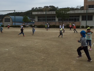 一休みをした後には、学校の校庭で「ふやし鬼」。
