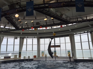 イルカのジャンプに「うわぁー!」と、大喜びでした。