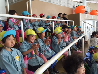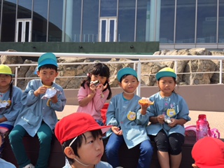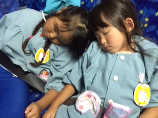 楽しかったけど、そろそろ帰る時間。バスに乗って、幼稚園に帰ります。