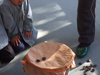 あとは、ベーゴマ! 紐を巻いて・・・