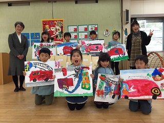 つきぐみが出品した「防災ポスターコンクール」と「シルバーフェア」の絵。