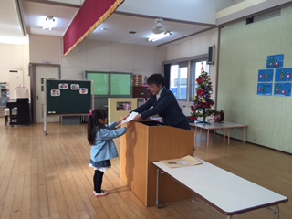 園長先生のお話を聞いたり、冬休みのお約束をしました。