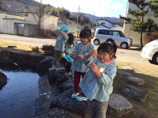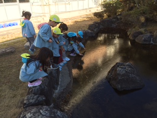 たこあげを楽しんだ後は、小学校の池まで、お散歩♪
