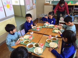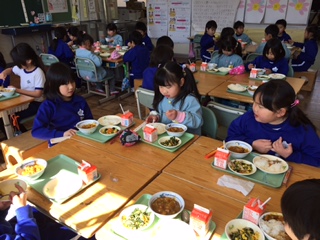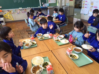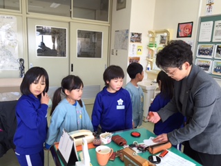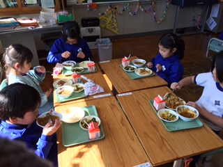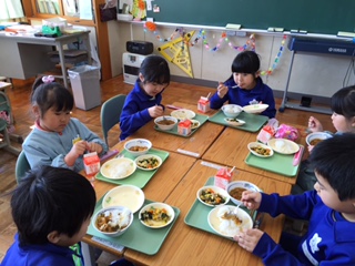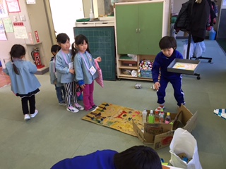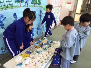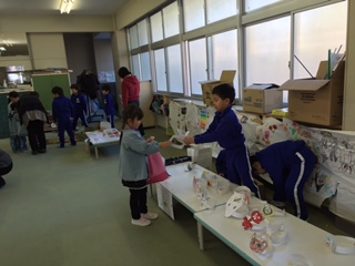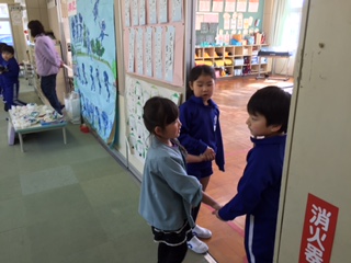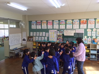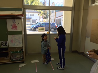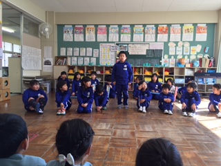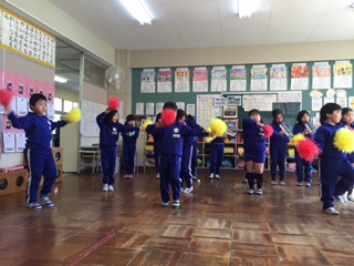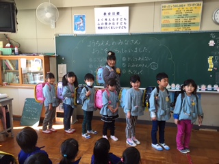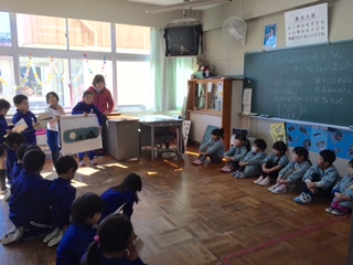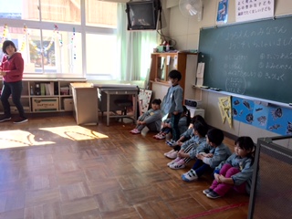 質問タイムの後は、一年生が、「たぬきの糸車」のお話を読んでくれたり、一、二年生の、「鼓笛」の演奏を聞いたり、一緒に「じゃんけん列車」をして、過ごしました。