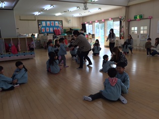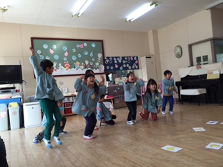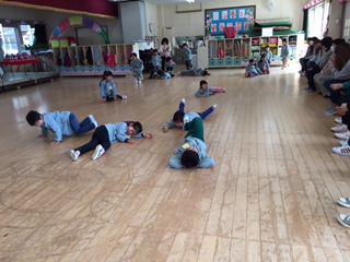 「寝た!」 だるまさんの話しを聞いて、いろんなポーズをして面白かったね。