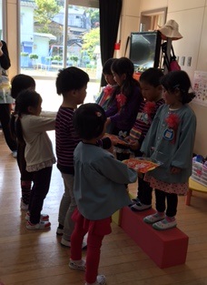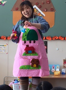 先生からは、「3匹のこぶた」のエプロンシアター。