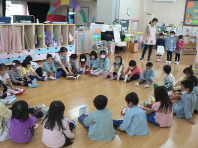 2020年10月12日 16時10分天気がよくなかったので、今日は組を超えた3つのグループを作り、みんなで名前を考えました。