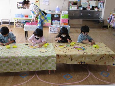 そら組さんは難しい折り紙に挑戦。手先が器用です。
