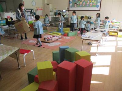 2021年2月9日 11時40分今日の自由遊びは、なかなか巨大な作品となっております。