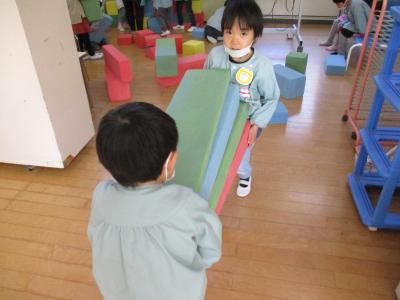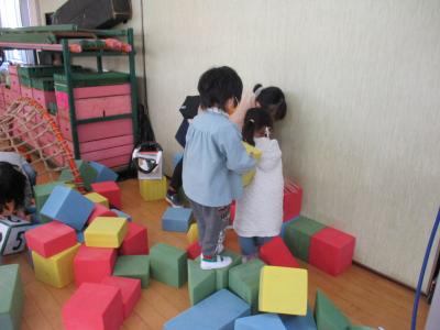 今日の自由遊びは、なかなか巨大な作品となっております。