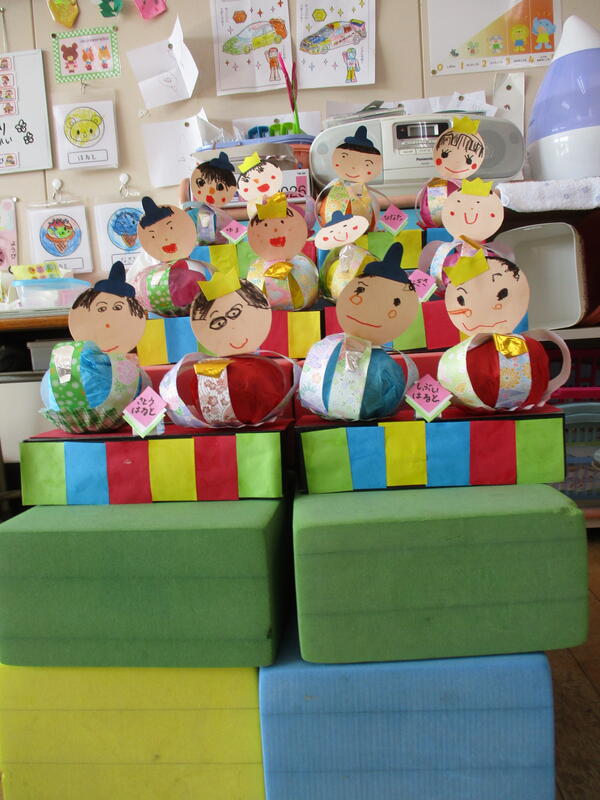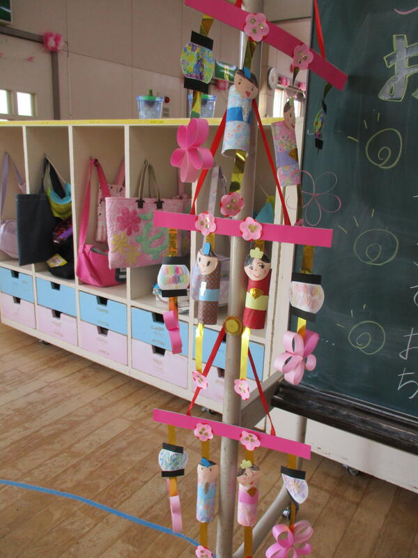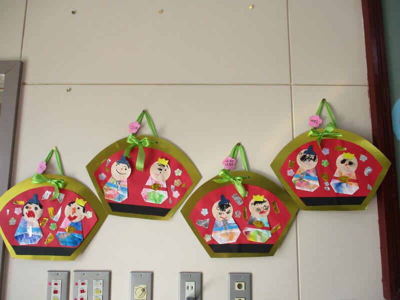 今日は3月3日桃の節句、ひな祭りです。宮幼稚園にも本格的なものからかわいらしいものまでひな人形が飾られています。