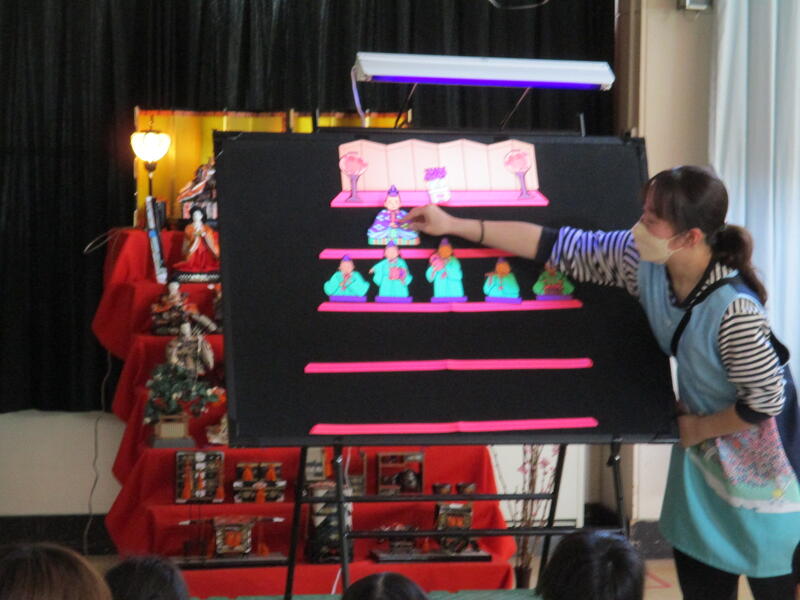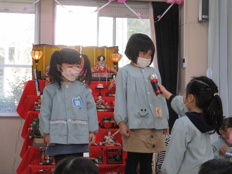 2022年3月3日 12時25分今日は3月3日桃の節句、ひな祭りです。宮幼稚園にも本格的なものからかわいらしいものまでひな人形が飾られています。