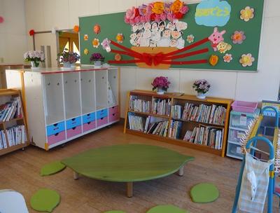 湯本第一幼稚園内外を紹介いたします。まずは、建物内です。仕切りを取り払い、のびのびしたオープンスペースです。本を読んだり、お絵かきをしたりできます。園庭には、本幼稚園のシンボルでもあるミラーマンがいます。