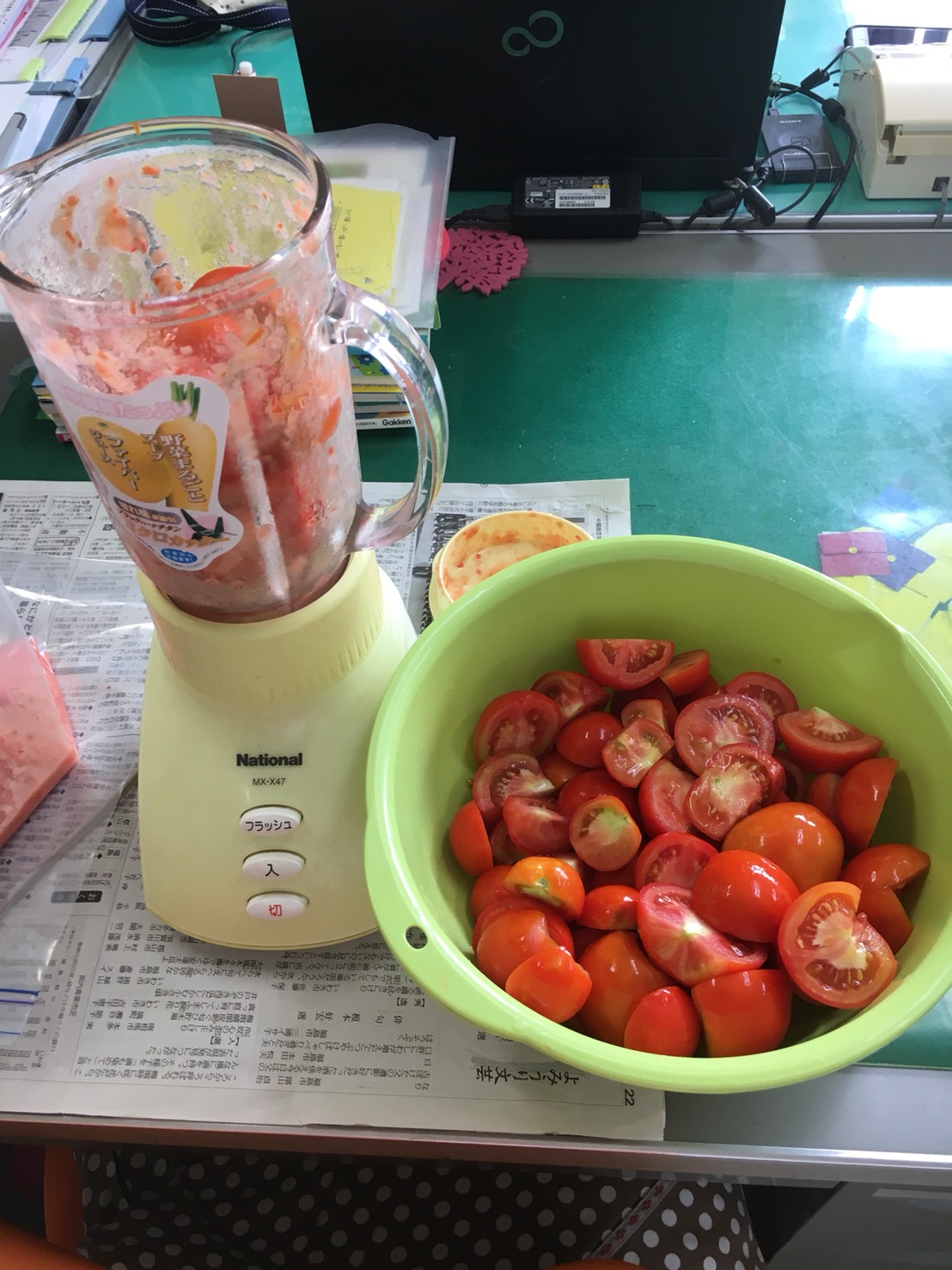 2学期に調理して食べられるよう、ミキサーにかけて、冷凍保存することにしました