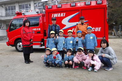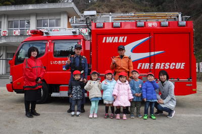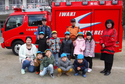 消防自動車と一緒に記念写真を撮りました