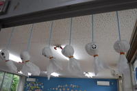 明日、晴れることを祈って、子供たちが部屋で「てるてるぼうず」を作っていました。
