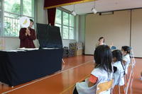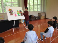 お月見に関連したお話など季節の楽しい絵本や、エプロンシアター、ペープサート、紙芝居など、充実した内容で子供たちも喜んで見入っていました