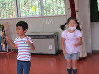 今日の午前中はあいにくの雨だったので、室内で体を動かす体操やダンスなどを楽しみました。
