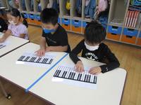 年長組は、生活発表会に向けて音階にふれたり、指使いに慣れる活動を取り入れています。