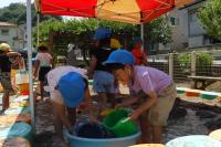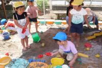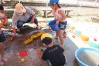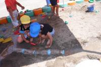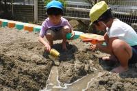 水と砂の性質を肌で感じながら、友達と考えや思いを一緒にして十分に楽しみました。