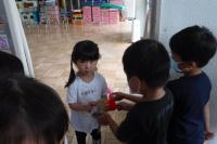 お別れには折り紙の作品やクッキー(段ボール作)をプレゼント。