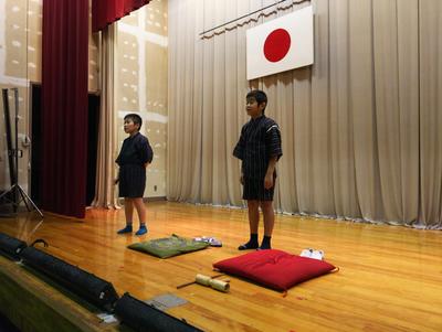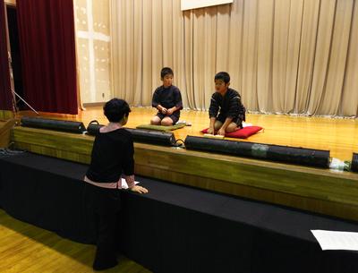 2019年10月10日 13時09分演劇家の先生に落語をみていただきました。先生のアドバイスでとても楽しいものになりそうです。子どもたちも楽しいものに仕上げるために気合いが入り直したようです。