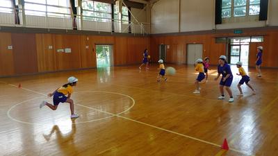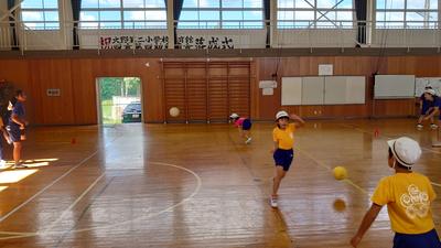 2020年9月28日 10時32分休憩時間は児童集会です。6年生がみんなをリードして遊びます。今日はボールが二つのドッジボールでした。どこからボールが来るかがわからないので、けっこうスリリングでした。最後に勝つのは、果たして?