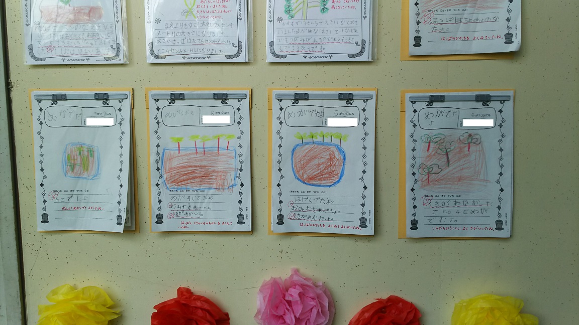 2018年5月29日 09時43分自分たちで植えた種の発芽を記録したり、図画工作の時間に自分の心の中を絵にまとめたり。とても大切な、濃密な学びが進行中です。