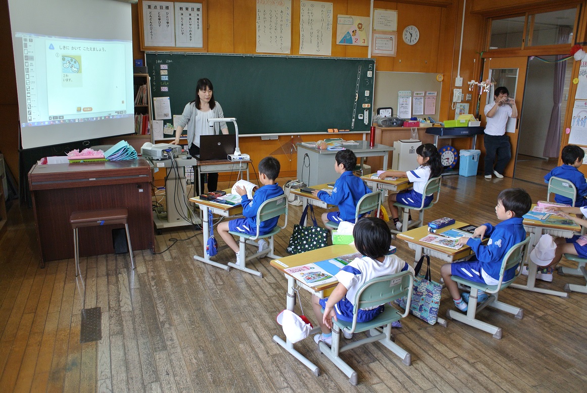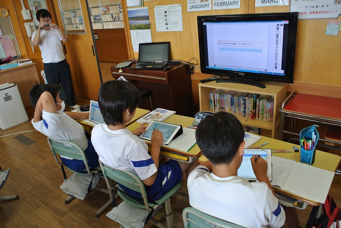 磯部小学校では、児童一人一台タブレット端末を貸与され、授業や家庭学習、委員会活動等に活用しています。テレビ電話で横浜の小学校と連携したりしてもいます。最先端の教育がなされ、確実に学力が高まっています。そこで授業を見せていただき、校長先生から詳しいお話をいただいてきました。
