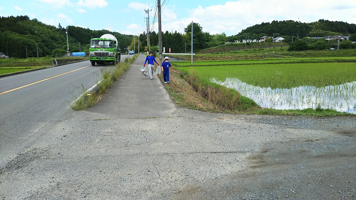 1時間程度の活動でしたが、思ったよりゴミの量が多くて驚きました。特に、幹線道路周辺には、家の窓ガラスが惚れて落ちていたりして、子どもたちもひろうのに大変苦労していました。