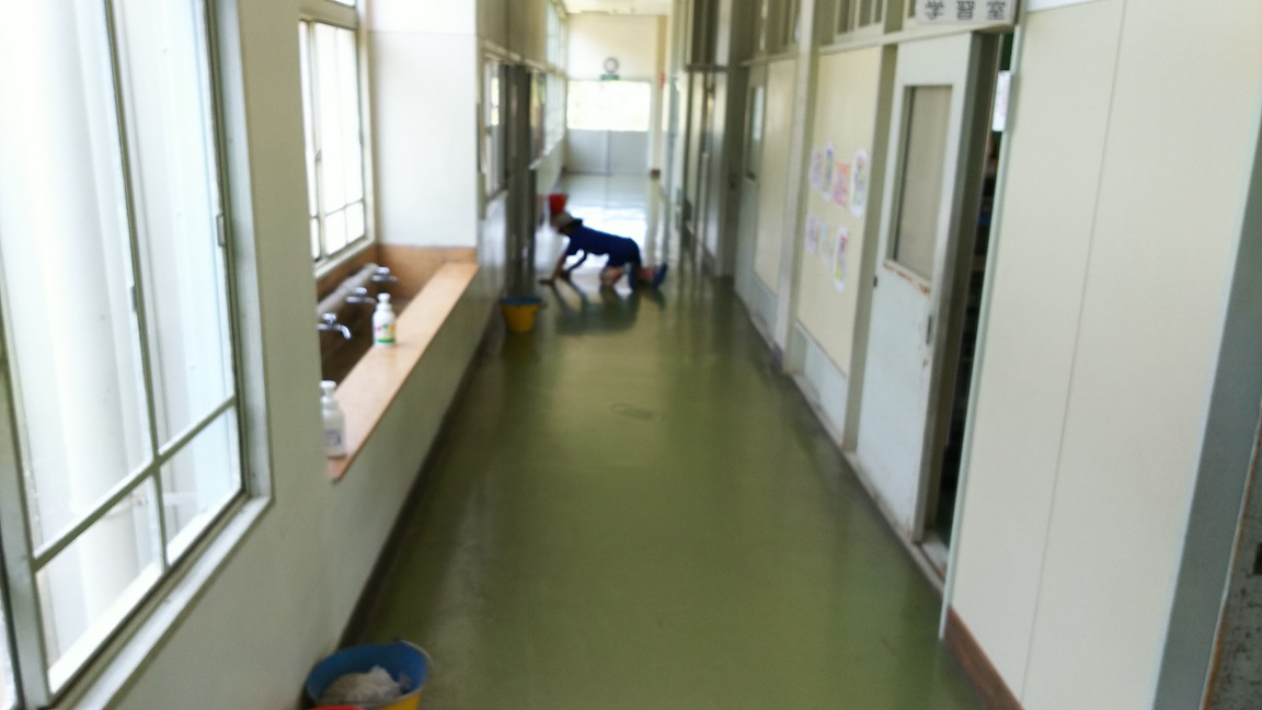 2018年6月7日 14時09分評議員会で、お掃除の時に廊下をみがいている様子もみてみたいというリクエストがありましたので、早速今日のお掃除の様子をご紹介します。二人でみがいているのが1年生と2年生。一人で端から端まで頑張っているのが5年生です。