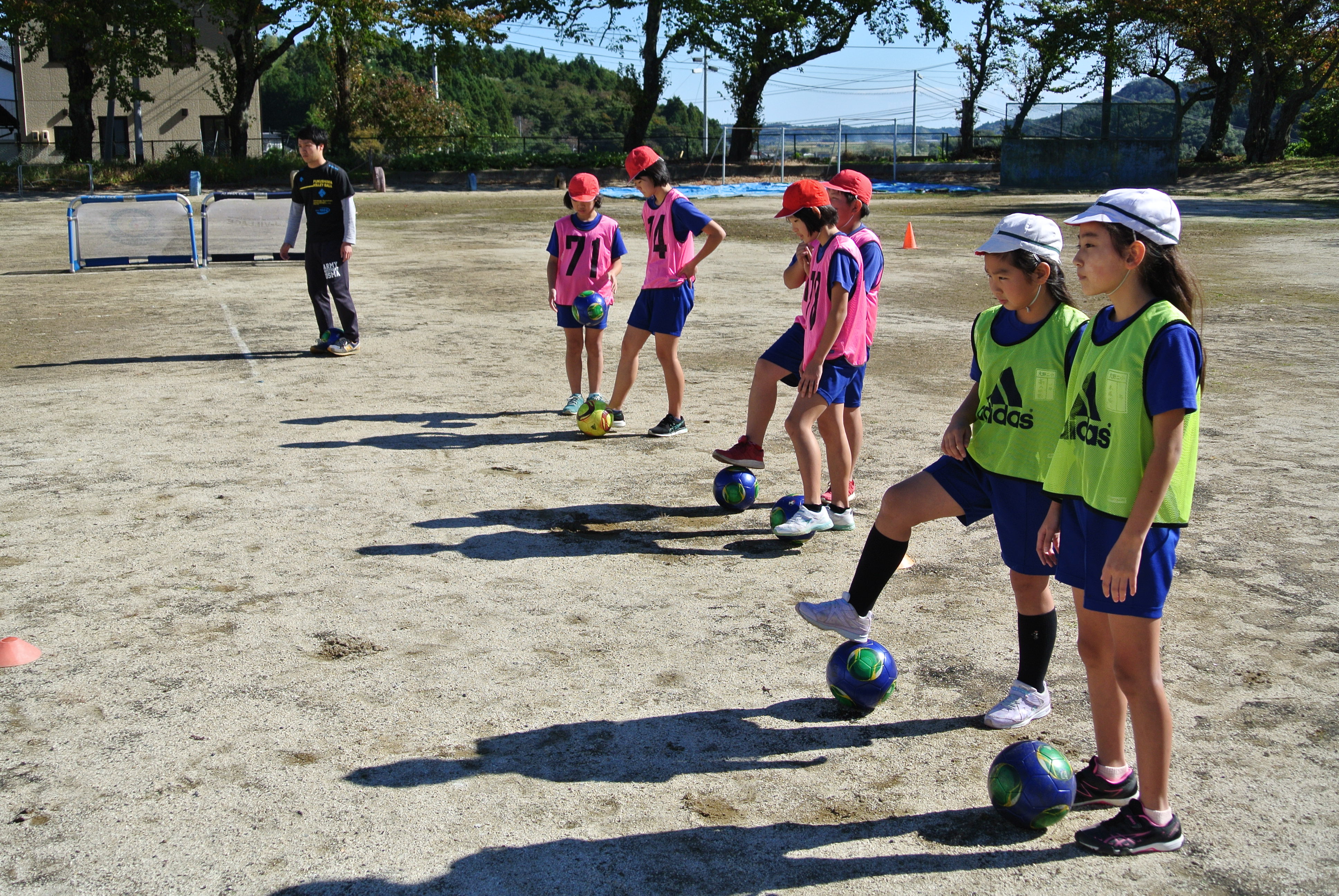 2018年10月30日 12時44分今日と来月の2回にわたって、サッカー教室を開きます。今日はJビレッジから2人のコーチに来て頂き、初歩的な動きからミニゲームまで教えて頂きました。初めてボールを蹴る人もいたり、間違って相手の足を蹴ってしまったりとハプニング続出でしたが、楽しい時間を過ごすことができました。コーチの皆さん、お世話になりました。