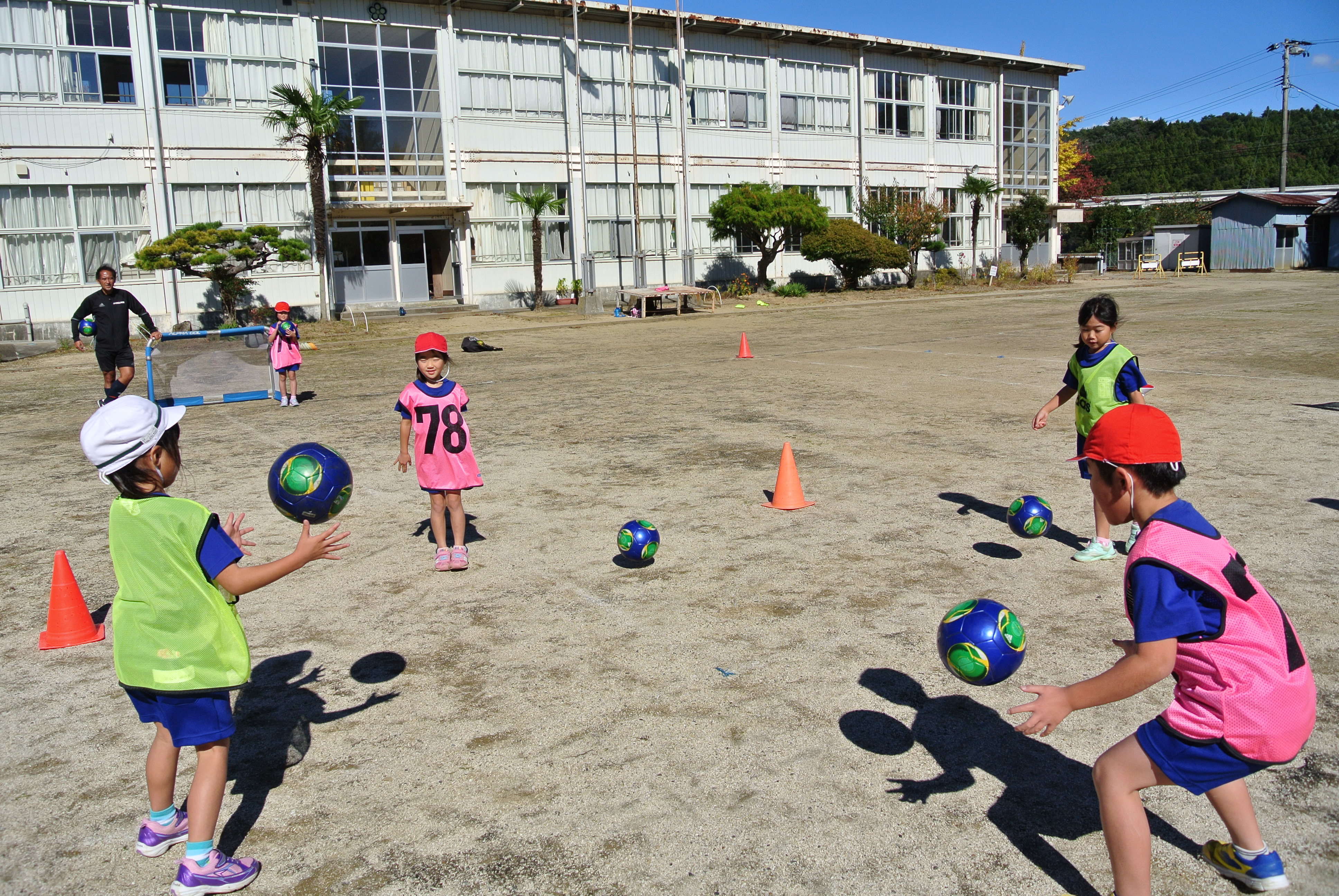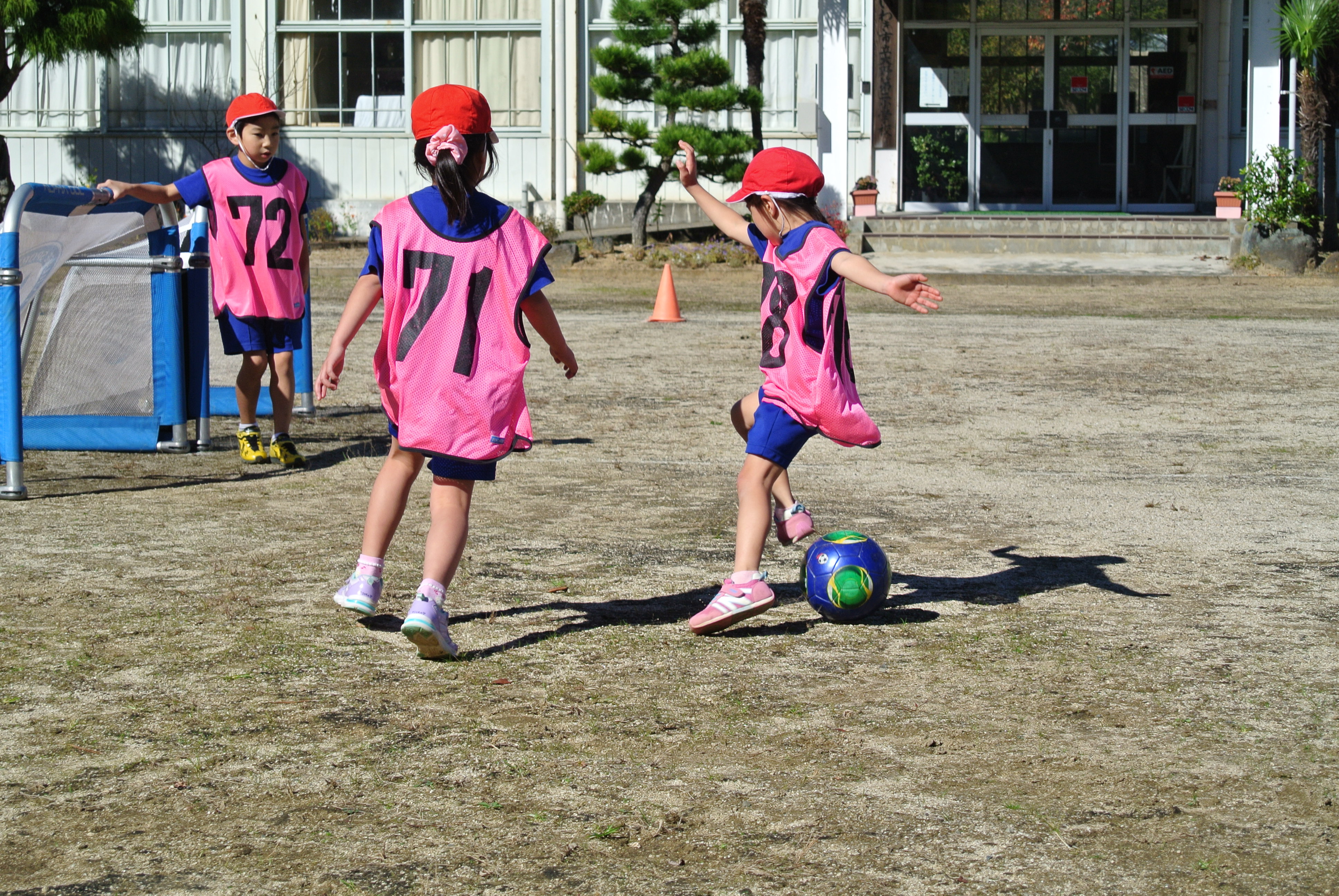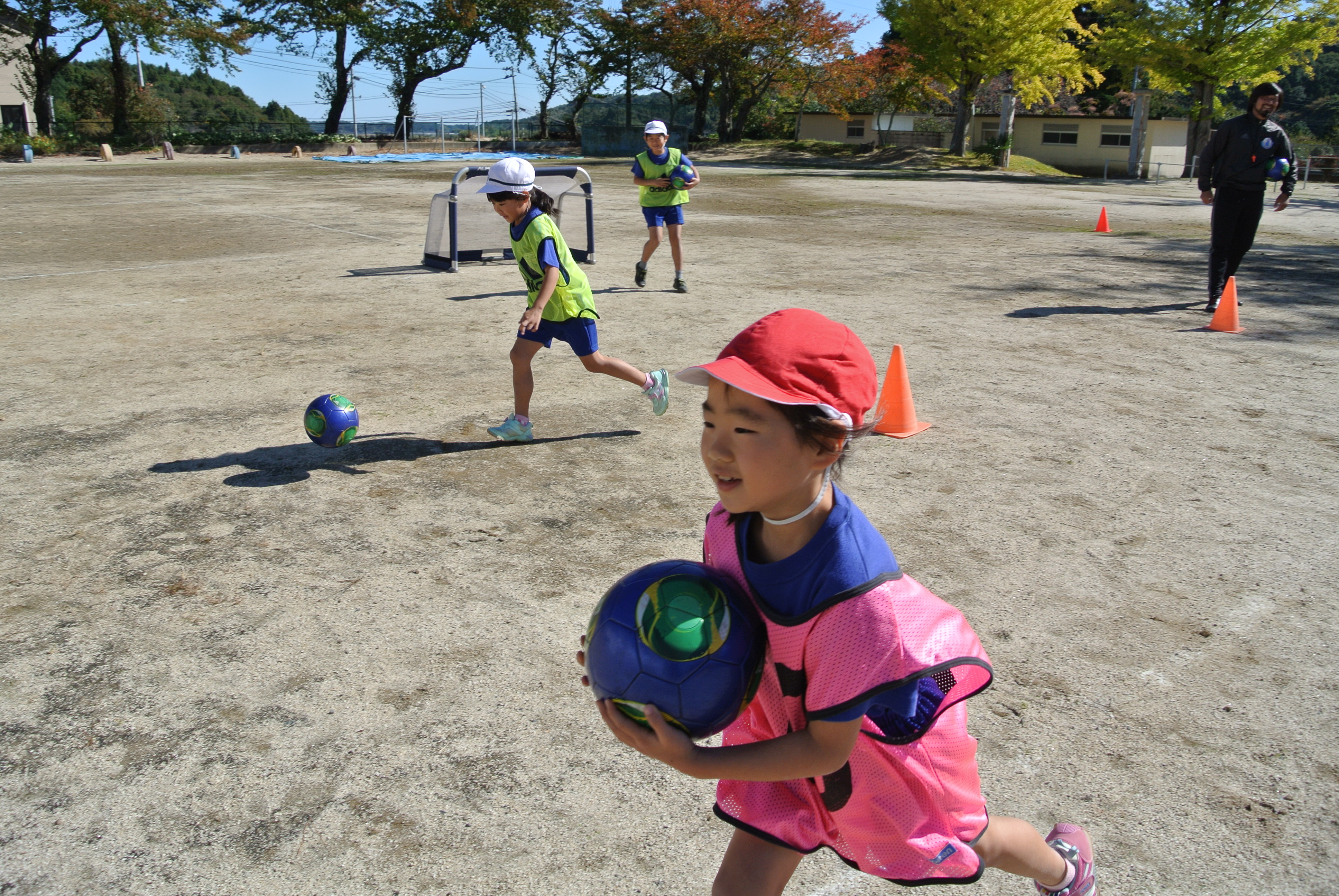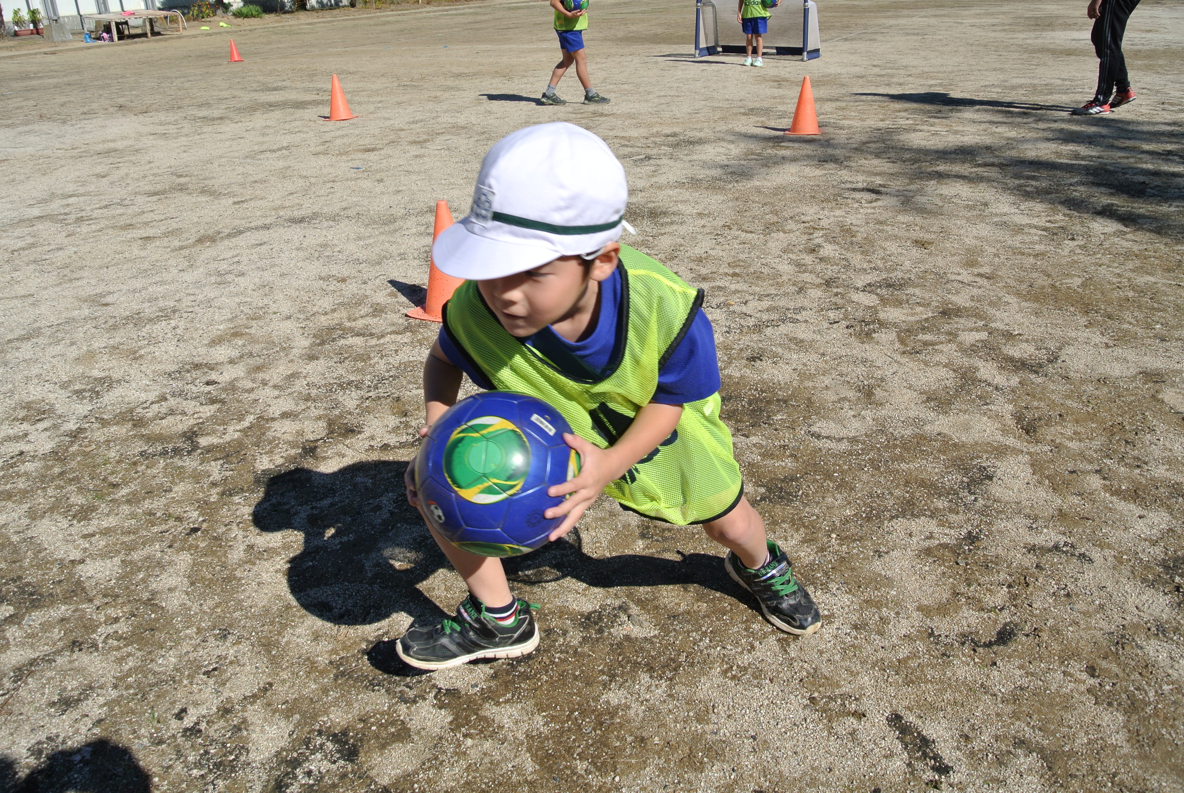 2018年10月30日 13時05分1・2年生も、特別メニューでサッカーです。ボールをさわって思わず「かたい!」と叫んでいました。怪我をしないかなぁと心配していたら、4・5・6年生よりも動きがよくて、こちらもびっくりでした。